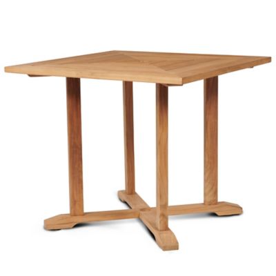 Teak outdoor dining table with umbrella hole.