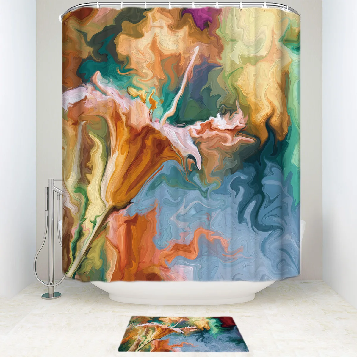 Shower curtain set with hooks bathroom curtains mildew proof curtain decor sg.